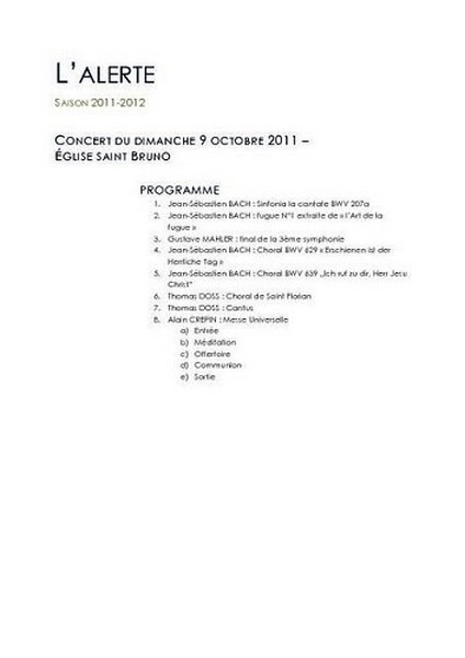 ANNEE 2011 (Noël, Ste Cécile, St Bruno, festival ACS, Gala, Festimuz, La Chapelle St Luc)